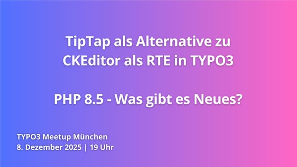 Am Montag 8.12. ist das nächste Treffen der TYPO3 User Group München (wie immer remote).